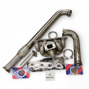 This exhaust manifold, v-banded 3″ turbo elbow, 3″ v-banded downpipe and dump pipe fits the S13/14/14a/15 with the SR20DET engine.