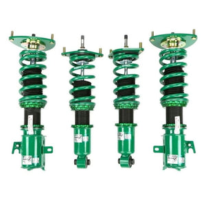 The TEIN Flex Z coilover kit is an affordable, street ready kit with a Twin tube internal construction. Ride height adjustments are made by moving the lower spring seat either up or down with 16-stage damping force adjustments made via the click adjuster positioned on the top of the coilover. Includes TEIN top mounts.